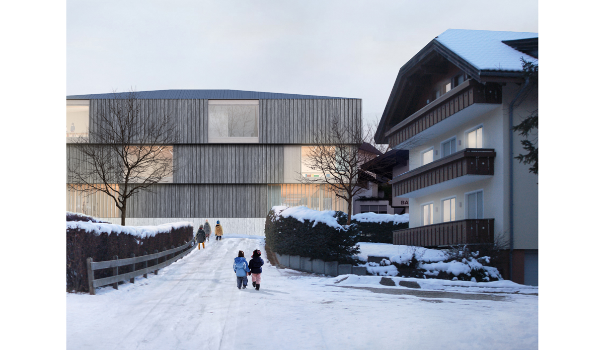 The project for the primary schools in Valdaora di Sopra recovers some vernacular elements of the barn-house of Val Pusteria to fit the new elongated volume into the context. The presence of a solid plinth, the façade in larch boards and the pitched roof create a delicate balance between the identity of tradition and the need for innovation for a contemporary school. The progressively growing volume, typical of the archetypical structures of the context, also recalls the tree metaphor. The project replaces the existing primary school, reinventing the relationship with the valley. The access level allows for continuity between school activities and the local community. The basement level accommodates the gym/civic hall, lit by a device that collects natural light from the upper floor and distributes it throughout the space. The central staircase is the heart of the school, as a place of sharing; this area opens zenithally towards the sky through a horizontal window at the meeting of the pitches. On the perimeter of the upper floors, the classrooms open up towards the horizon and the valley landscape through large panoramic windows. At twilight the school lights up like a lamp, bringing out the big "eyes" that frame the territory. Thus, the contact of the building with the ground dissolves and unexpected visual relationships with passers-by emerge.