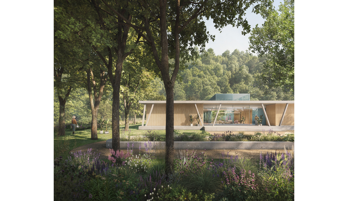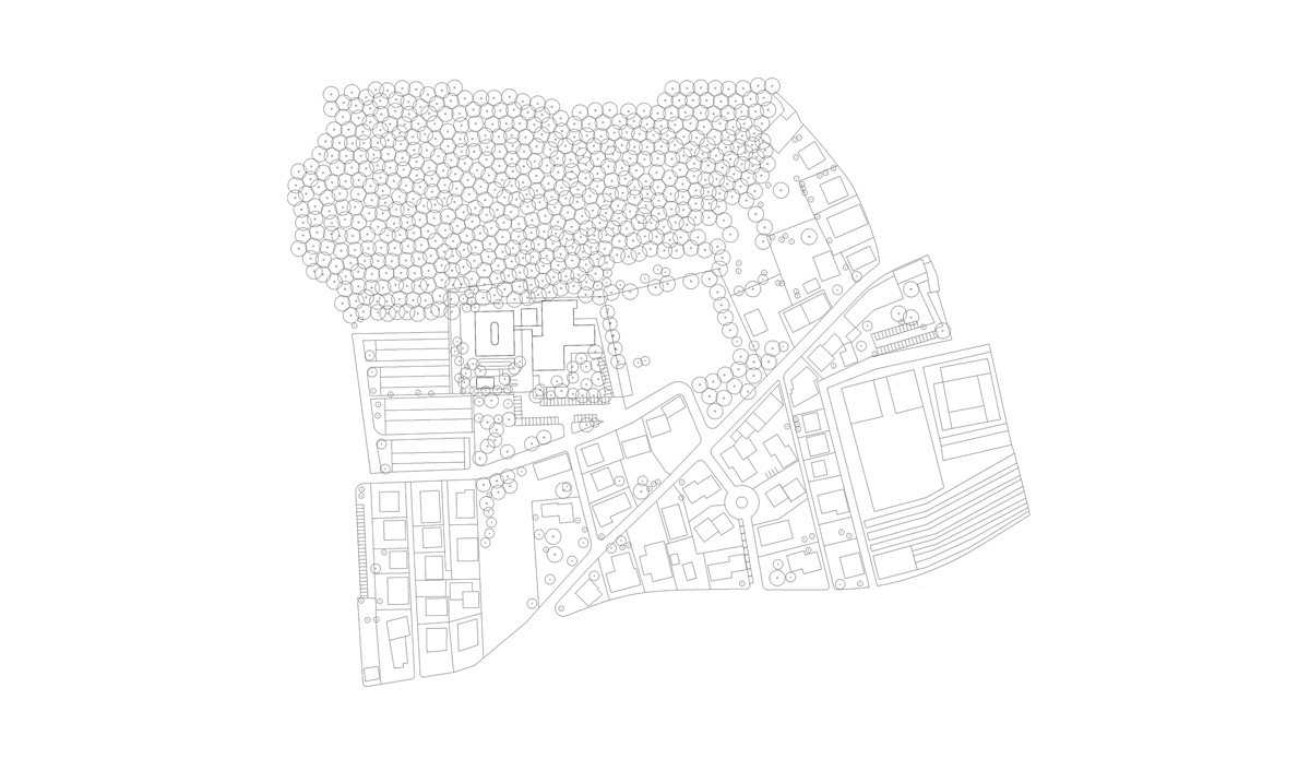The core concept underlying the architectural proposal is the creation of a "pavilion in the green", a building capable of connecting with its surrounding environment and deriving the maximum possible benefit from it, both in terms of the quality of its interior spaces and its interactions with the exterior. The idea is to develop a residential complex where one can "live in nature," in direct contact with its colors and sounds throughout the changing seasons, while still being within a technologically advanced, innovative structure tailored to the specific needs of its residents. The overall design seeks to establish a direct and continuous interaction between indoor and outdoor spaces. A north-south axis running through the building, visually linking the southern garden to the hillside, serves as the "spinal column" of the new architecture. Along this axis, the most public areas of the building are organized, naturally extending into the surrounding landscape. A long, narrow garden courtyard is integrated along this axis, enhancing its significance and providing natural light to the innermost spaces; it occupies the heart of the building as a green insertion within the architecture. This open-air space features a central planted flowerbed, around which one can walk. Defined by a floor plan free of sharp corners, the garden courtyard shapes the main horizontal circulation of the building while also guiding the internal wandering experience, ensuring that every pathway remains visually connected to the greenery.